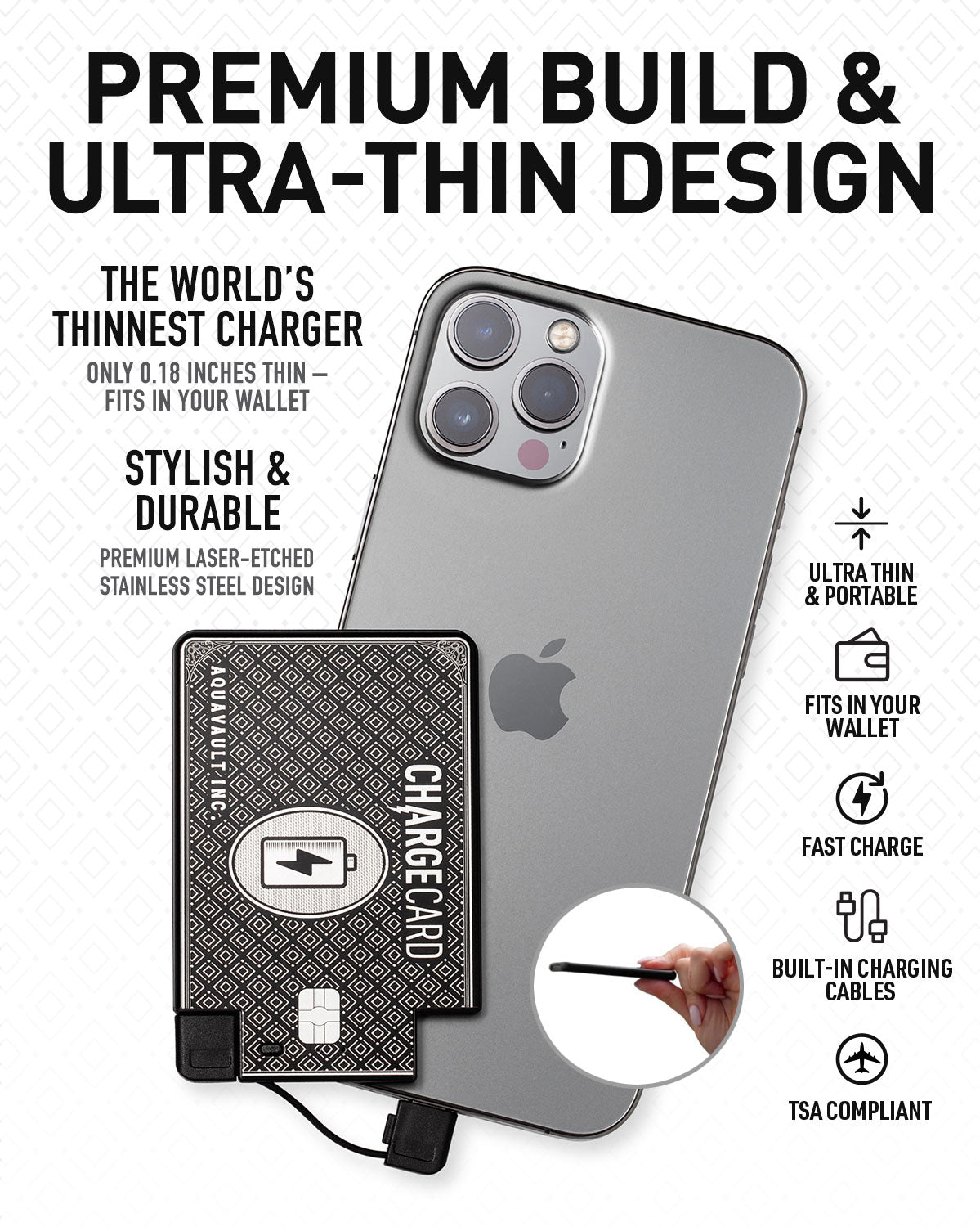 - The ChargeCard is a Credit-Card-Size Portable Charger that actually fits in your wallet (Most likely the smallest charger you have ever seen)