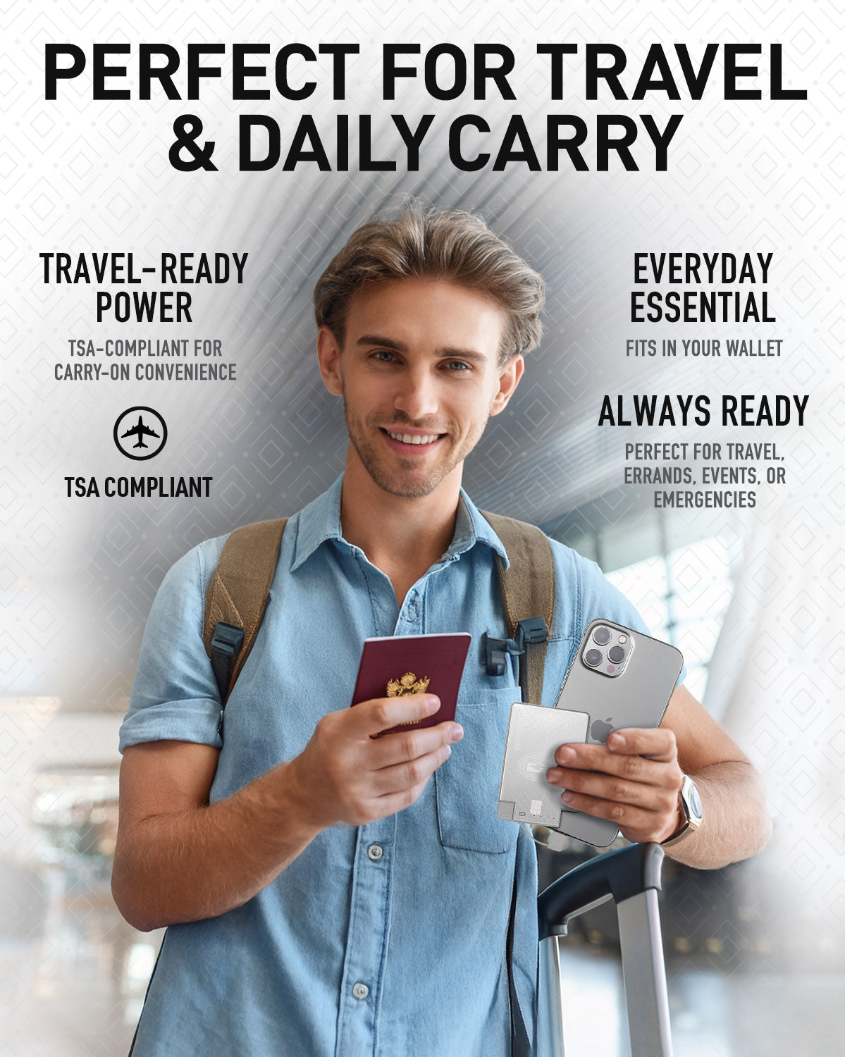 • Never worry about your phone dying when you’re on the go