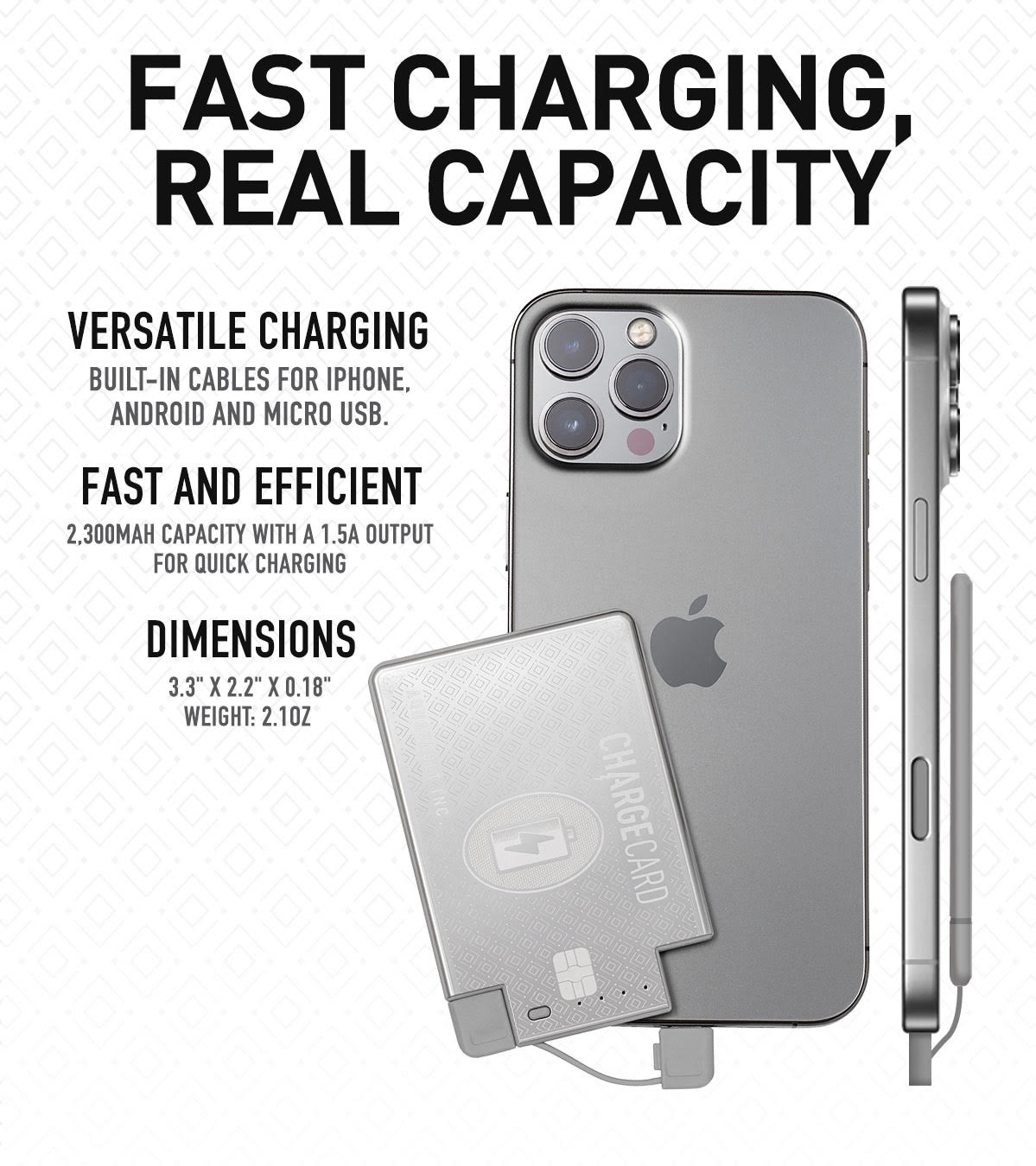 • Fast Charge Technology (2300mAh: 1.5A) - it’s POWERFUL & TINY